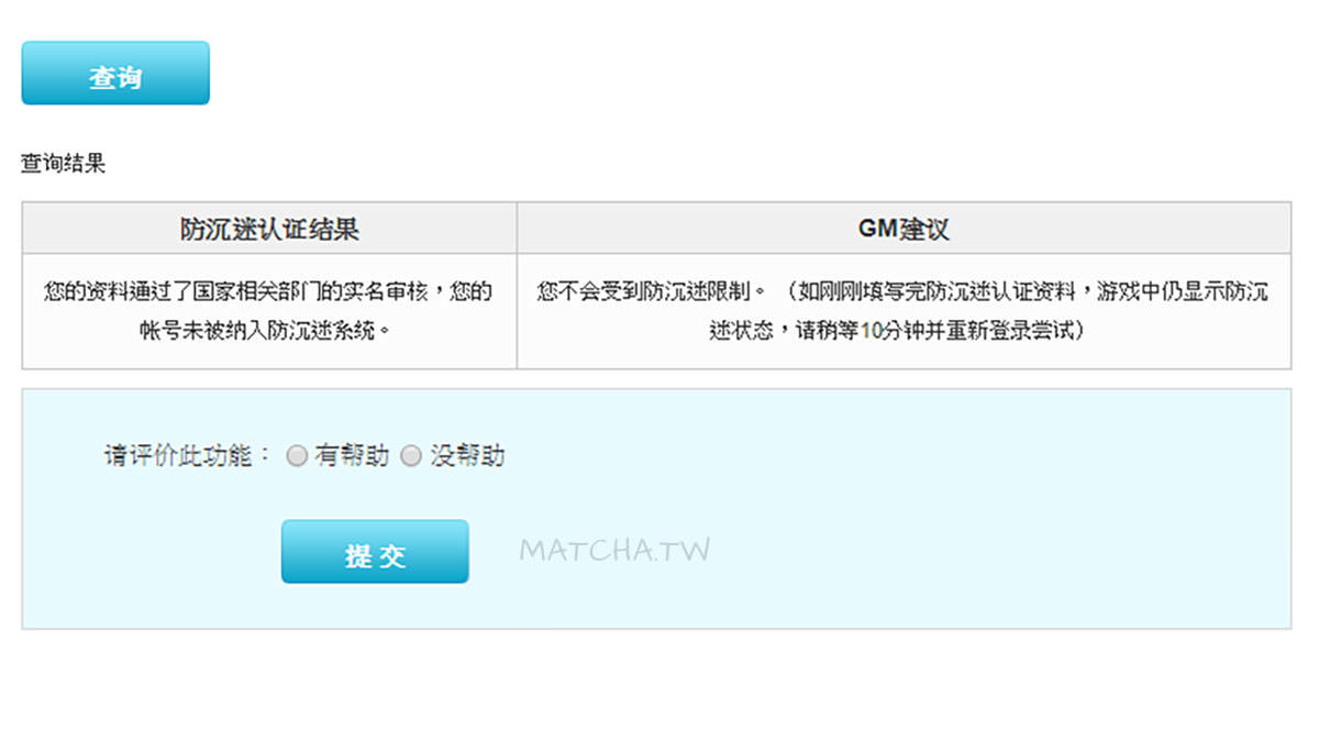 中国的游戏怕小孩玩太久,所以有这个神奇的功能,实名认证後才不会有防沉迷的限制,所以可以透过防沉迷查询来看看自己的实名认证是否通过。