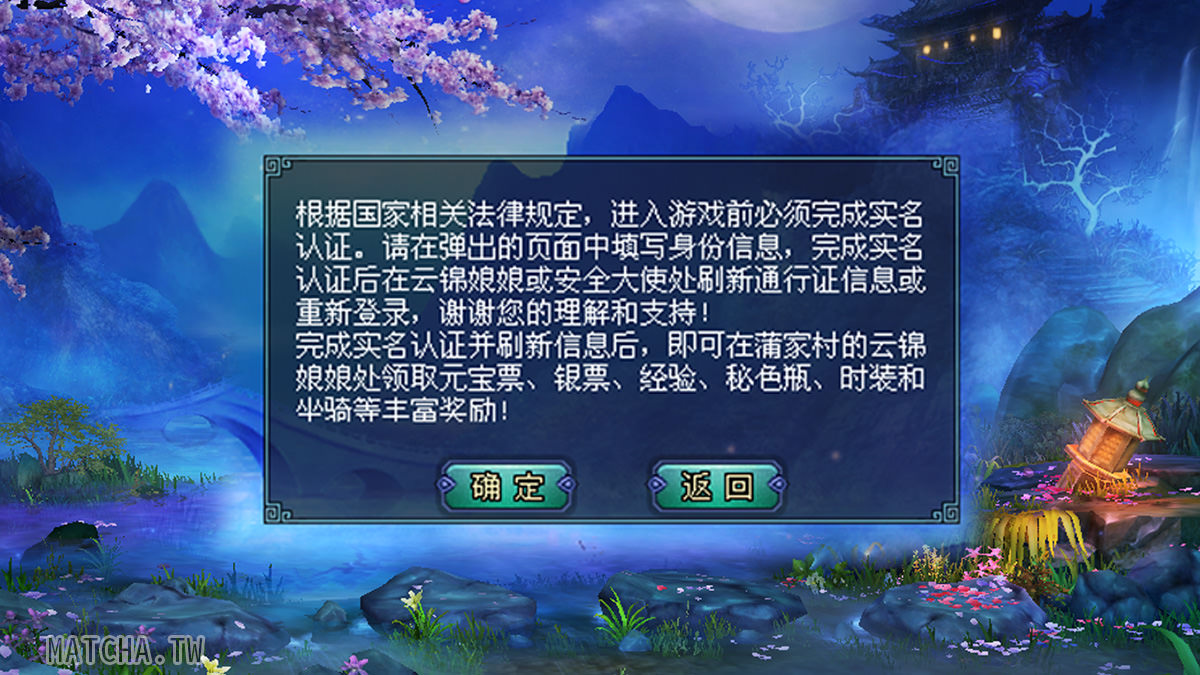 一选择伺服器进去游戏,确认帐号完就会跑出要你实名认证的视窗,若按返回游戏直接关掉。