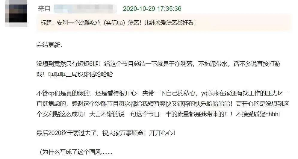 观众们真情实感的评价节目中CP的相处方式,会在男选手少东冷落女选手萱萱时,为萱萱打气鸣不平,也会批评少东的“不绅士”,甚至还会从节目引申到自己生活中的种种遭遇。