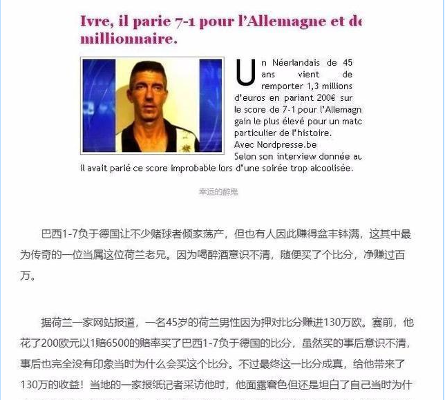 2014年世界杯,就打出了一个“荒唐比分”——巴西1:7负于德国,一位荷兰的酒鬼得赔了本金的6500倍得到合人民币1100万,说明了两个问题:1、高赔率的比分有多难;2、庄家必须有钱有实力。