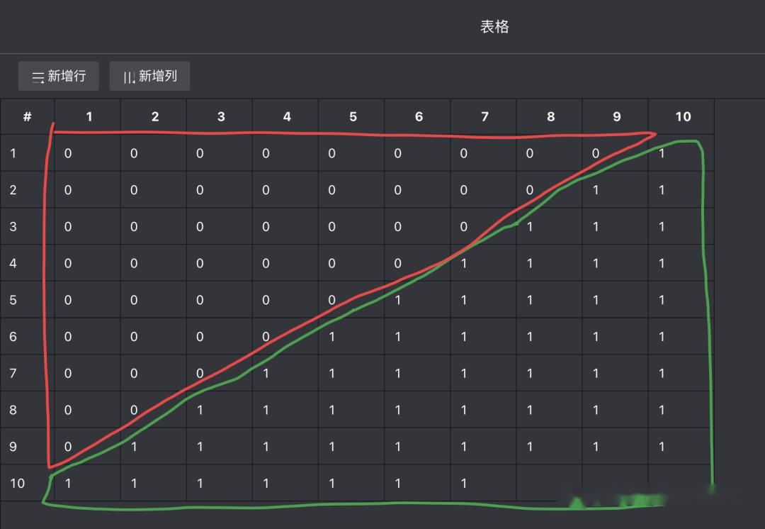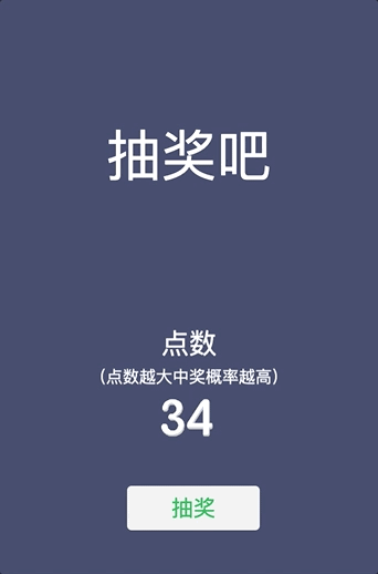 逻辑其实很简单,点击抽奖时,使用当前的点数除以 10 ,然后向上取整,可以得到表格中的行号,得到行号后,从 1~10 中取出一个随机数当作列号,抽取表格中的数判断是否等于 1,等于的话表示中奖,将点数减少。不等于的话表示未中奖,将点数增加。