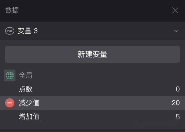 接着,创建三个变量。如果未中奖,点数就会加上“增加值”,如果中奖了,点数就会减去“减少值”。